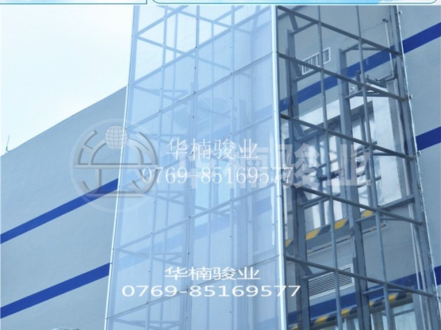 室外三层垂直货梯,加大台面,重载,液压直顶,透明PC板三面维护 ,双机械配重门,室