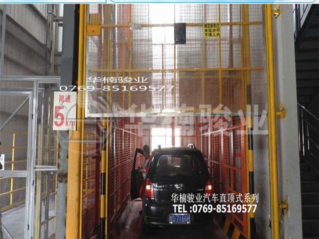 本设备采用优质猛钢钢构,菱形网框外围,承重轿厢加宽加长,采用双向进出车的方式开门,
